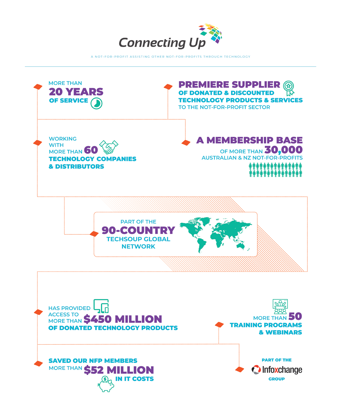 Connecting Up’s and TechSoup New Zealand’s services are available in Australia, New Zealand and throughout the South Pacific. Our work has a huge impact across all sectors of the not-for-profit sector, increasing the effectiveness and capabilities of organisations in almost every area that they operate.