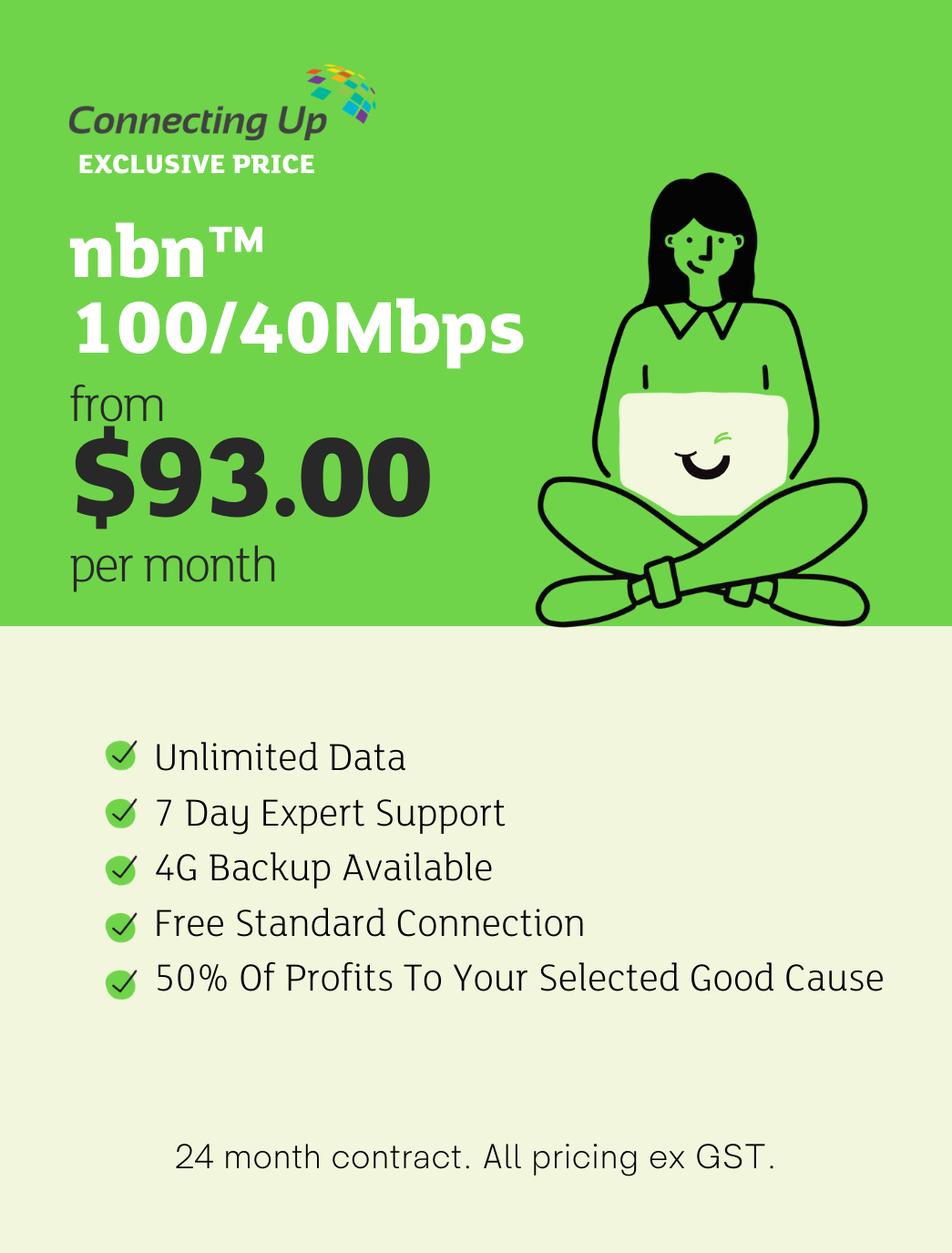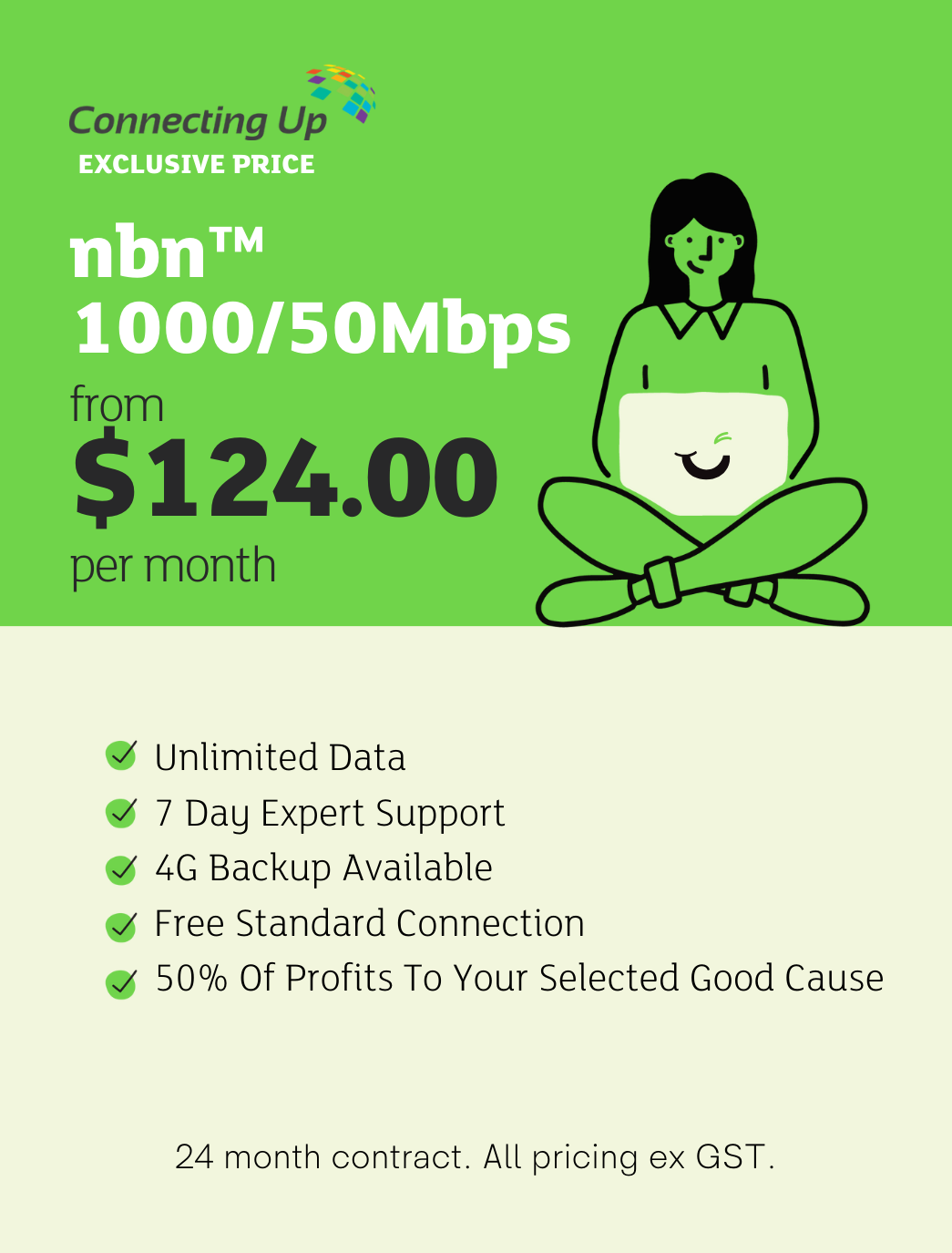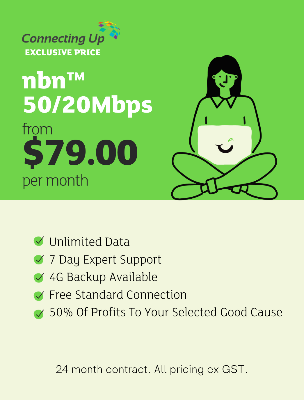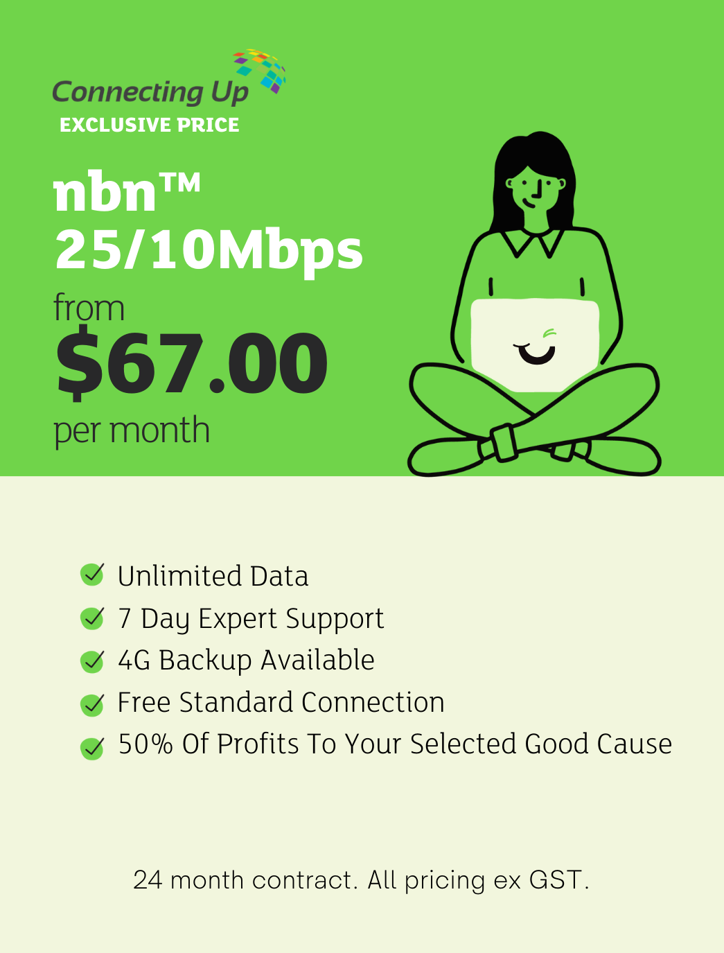 Goodtel’s small business nbnᵀᴹ allows your organisation to be connected whilst making even more of a difference to those who need it most. With unlimited data on all plans, optional 4G back up and access to 7-day expert support your business internet will never let you down.