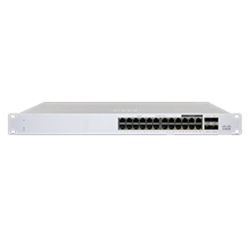 The MS130-24-HW is a Cisco Meraki MS130 Series cloud-managed layer 2 access switch. It provides 24 Gigabit Ethernet ports and 4 Gigabit Ethernet SFP uplinks. It is designed for use in medium-density deployments and branch office networks. The enterprise cloud license provides five years of access to the Meraki cloud platform, product updates, and support.